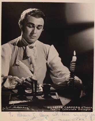 Campora was born in Tortona on the 30th of September 1923. The family was not rich as the mother did her homework and father Campora was a labourer. Sister Sylvana worked in a tobacco factory. Music for those people didn’t mean expensive records, or a private radio an definitely not concerts or performances. Music was best made oneself and with Campora it started as it did with so many good Italian singers: in church. Another possibility was performing with an amateur company and there Campora learned to appreciate operetta which he as one of the few Italian tenors of his time would sing (and record on Cetra). The book only mentions once “pieno Regime, tempi difficili” but doesn’t expand on those difficult times during the Regime. Among the many photographs there is one of Campora with a large group of boys in the Balilla (the Fascist Youth Movement). Campora is one of the few kids not in uniform but as a school boy he undoubtedly had to sing “Giovinezza” (in the third Mussolini-adoring version recorded by Gigli) or the “Inno al Duce” (with new lyrics for Puccini’s Inno a Roma). In his amateur days Campora got his first voice and music lessons. I don’t know why he didn’t become a soldier during the war as he had the right age. In a small town like Tortona (less than 20.000 inhabitants at the time) a young fresh tenor voice would soon be noticed but Campora had stiff competition. A local truck driver had a real dramatic tenor voice and though completely unschooled was the more popular: Primo Zambruno who only at 37 took the risk of an operatic début in 1951 (Timaclub produced an interesting Zambruno CD) and whose international career therefore was rather short. After the war Campora studied privately with two maestri for 4 years while at the same time working as a railway policeman and fulfilling his military service. In the meantime he had already made his début at the well known Teatro Petruzelli in Bari, replacing an ailing Galliano Masini in La Bohème . Continuing his studies he performed in Lucia, Tosca, Bohème, Rigoletto and Butterfly in smaller provincial theatres with other young singers in 1948. The names of some of his partners still ring a bell: Franca Duval, Maria Marcucci, Ugo Savarese, Tatiana Menotti. In those singer rich times nobody would have dreamed of offering a début to a completely unknown and untested singer at the opening of La Scala as happened recently. From 1949 on the Campora career takes flight. The theatres become bigger (Communale Modena, Teatro Grande Brescia, Teatro Verdi Trieste) and so are the names of his partners (Zeani, Panerai, Fineschi, Barbato, Manachinni, Favero, Petrella, Bechi). The “Portrait of an Artist” rightly tells us of those happy times when “lirica” was still the most popular music in Italy, when simple people could recite all the lines from the famous “romanze”, when a young talented tenor could easily rise above his humble station and earn a lot of money. As Campora sang in good provincial opera houses he concentrated on the iron repertoire for which his lyrical voice was so apt. In 1950 that meant a dose of Butterfly, Tosca, Faust, Mefistofele, Rigoletto, Traviata. In those days with less government subsidies local houses couldn’t perform less hackneyed pieces which were already often done at La Scala or the Rome Opera where at the end of the year Campora made his début in Mussorgsky’s Sorocinsky (with Boris Christoff). It earned him the right to return in 1951 in bread and butter operas like Bohème (with Olivero) or Traviata. In the summer of that year he got his first taste of recording when Decca invited him to sing the tenor leads together with Tebaldi in their now historic productions of Butterfly and Tosca. He was now so well-known that he was invited for the famous Brazil tour where he sang performances of Bohème and Traviata with Tebaldi. During the tour he got to know better the other artists like Christoff, baritone Paolo Silveri, the tenor Salvatore Puma and the American soprano Mary Callas. Campora was one of the singers in the famous concert where open enmity broke out between Callas and Tebaldi. 1952 sees Campora’s big break. In February he makes his début at La Scala (though like Carlo Bergonzi one year later) in a world première of a now forgotten work; Rocca’s L’Uragano. Probably the Scala contract was signed several months before Campora’s world renown. Indeed, in that same month Decca launches the recordings made in the summer of 1951. Up to that moment some Columbia-, RCA- and Cetra-sets monopolize the new LP market but now Decca-London makes it appearance with spectacular good sound and an even more spectacular young and fresh couple Tebaldi-Campora. Even a severe critic like Louis Migliorini in Opera News is swayed around. “Campora sounds like a young Gigli but with better taste” is his verdict on the tenor’s Pinkerton. In the recording opera buffs get their first taste of the new tenor. He has the goods: the voice is warm, fresh, very “simpatico”, it has ring above the stave and a nice vibrato. The voice on record sounds full and adapts well to the mike and it comes as a surprise that Giancarlo Landini in his astute essay calls it “light lyric” and not fully suited to the repertoire Campora was singing. Piano too is not Campora’s forte and some people will soon object to the inbuilt tear in the voice. Landini finds another weak spot in Campora’s chain mail though this is indeed easy to find with historical hindsight. The tenor from Tortona has a generic style. He is at his best in Puccini but he sings Verdi, Donizetti and later on Bellini, Rossini and Gounod as if they are contemporaries of the maestro from Lucca. Landini tells us that at that stage of his career Campora couldn’t have sung Radames in a big theatre but he still sounds fine and sings beautifully in the 1952 colour spectacular of Aida where he and Tebaldi lend their voices 