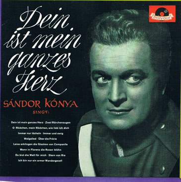 In 1962 I went to a Teacher's Training College in the small Flemish town of Lier (Ernest van Dijck died in a village in the vicinity) In my class there was a lot of interest in all kinds of culture and nobody found it strange that opera-singers were a passion for me. At the end of the first trimester my fellow students could all say Franco Corelli-Carlo Bergonzi-Sandor Konya whom at that time I thought the three greatest tenors around. Strange though it may sound now some of them knew Konya by name while the two others were completely unknown to non-opera-lovers. In those days there still didn't exist a ghetto-radio exclusively devoted to classical music, so apart from the inevitable Ankas and Presleys and French chansonniers one could still hear real singers from time to time. Soccer matches were uniformly played on Sunday afternoons and a particular favourite of the anchor-man was 'Du bist die Welt fuer mich', Richard Tauber's most memorable composition and freshly recorded by that new exciting tenor Sandor Konya.