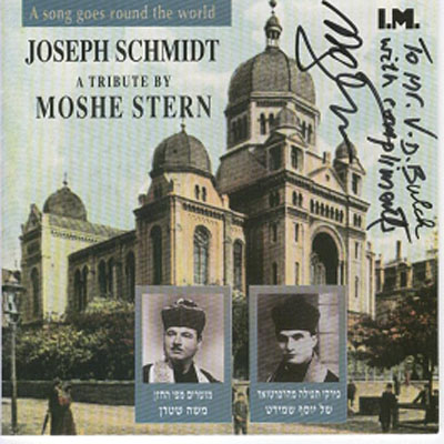 Schmidt studied for two years with Felicity Lerchenfeld, married to the local conductor Ottokatr Hrimaly (a Hungarian). The lady was a soprano and as late as March 1932 we find her singing Lieder on Goethe-texts in the local Goethe-Feier celebrating the poet who had died 100 years earlier on the same day. Schmidt studied another way of singing as well as he got the tenor lead in his own synagogue chorus and he became versed in the cantorial tradition as is proven by many of his non-Jewish recordings (Elisir d’amore for instance). He discovered that just learning to sing will not do for a career in music. He became his own manager and was something of a local celebrity as he threw himself into a plethora of activities as a singer, actor, writer and even composer of some small pieces. He was the tenor star of two local theatre pieces with incidental music. Nevertheless his chances were deemed very small to become an opera star and he got the advice to concentrate on a cantorial career. When he applied for the job of first cantor at one of the bigger synagogues he was rejected on the grounds of his size, though it seems the rabbi later on withdrew his objections.