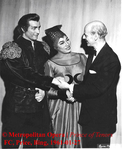 That record clinched it. The voice sounded even more impressive than Lanza’s; more powerful, with a nice vibrato, more style than the American tenor had and seemingly with even more splendid and long held high notes. Up to then I could still appreciate popular singers like Edith Piaf or the German Freddy Quinn and I already heartily disliked Americans like Presley, Avalon, Anka etc. The Corelli record made it clear; this was the kind of voice and the kind of music I wanted to hear. One year later a small tape recorder made its entry into our home. So I started to record the many opera programmes on radio. I even got to appreciate complete performances. But the one great and often played record remained that Corelli-record where I first met strange titles like Adriana Lecouvreur, where I discovered that Turandot had more than one aria and where I was sure that E lucevan was the cry of someone desperate in prison (I still didn’t know the story of Tosca). For three years I listened to every programme on Flemish, Dutch and Walloon radio and nothing new by Corelli was forthcoming. I wrote to my later colleague Etienne Vanneste and asked him if he didn’t have more information. He replied that there existed only that one small record. According to him Corelli was at the Met where he sang in ……La Traviata. If one man would know, it was Vanneste I thought and therefore I resigned myself to waiting, taping and listening to other singers and gradually discovering they had talent too and not only the tenors. It resembled somewhat “Waiting for Godot”. In my last year at high school I returned home, ready to listen to Walloon radio. For once my tape recorder was not set up when the announcer said: “aujourd’hui on présente une nouvelle intégrale de Paillasse (“Oh ! I’ve already got the complete Gigli version and that will do” I thought) avec dans le role principal le jeune ténor Italien..Franco Corelli.” I’ve rarely been more quick in my reaction to tape a broadcast.